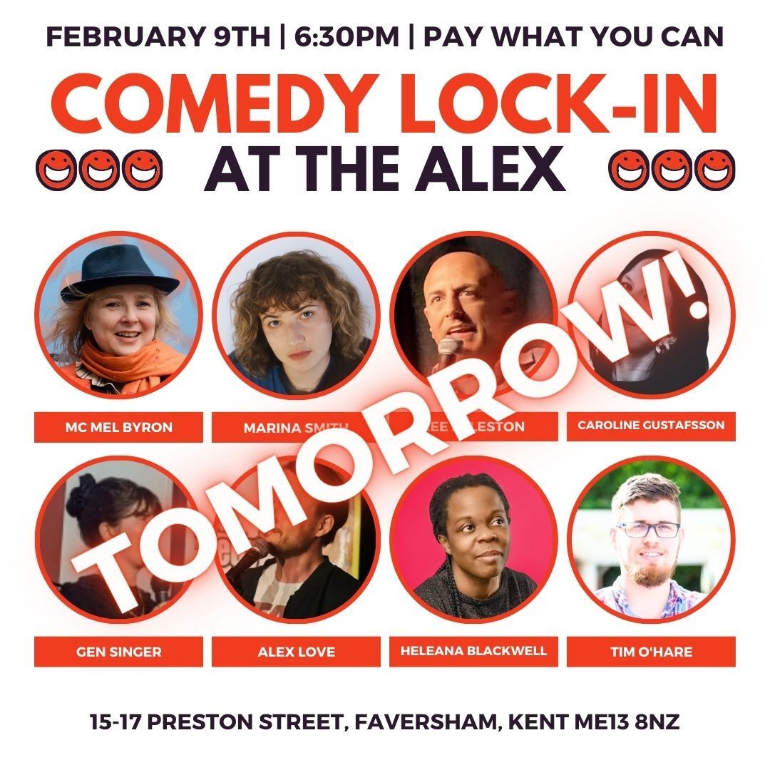Just a quick reminder that Comedy Lock-In is back TOMORROW β Sunday, February 9th β at The Alexander Centre, Faversham!