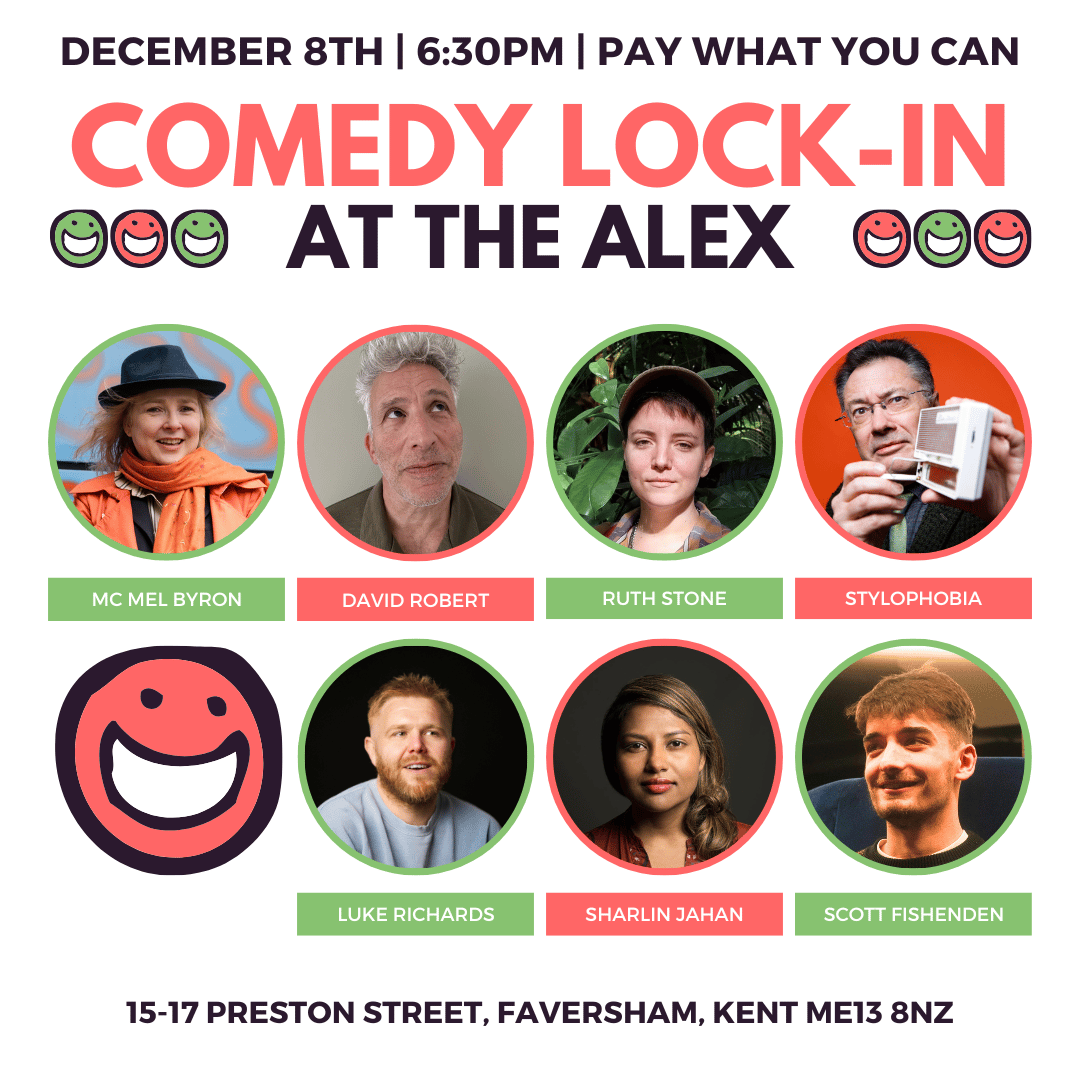 We’re wrapping up 2024 with one final night of laughter you won’t want to miss! Join us for Comedy Lock-In on Sunday, December 8th, at The Alexander Centre, Faversham.