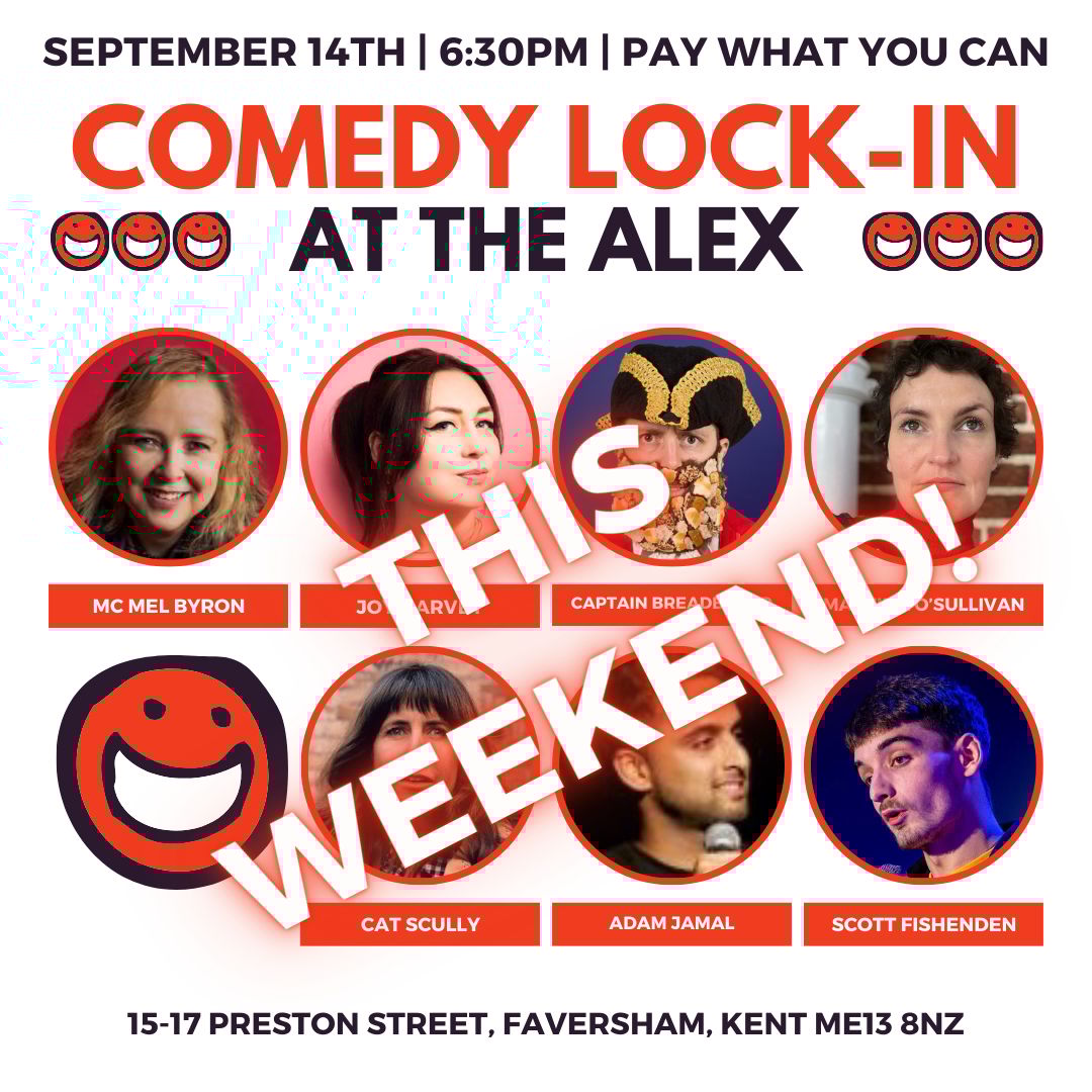 Comedy Lock-In is back this Sunday, September 14th, at The Alexander Centre in Faversham!